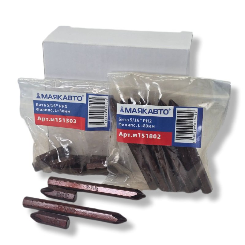 Биты 5/16" PH (Филипс) длиной 30 мм и 80мм МАЯКАВТО